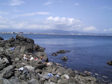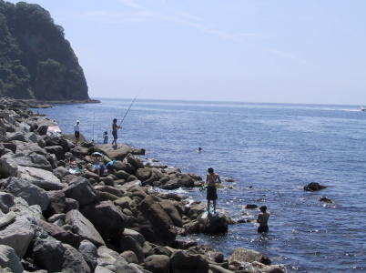 同じ日。泳ぐよりも、潜って獲物を探す人 が多い。 |