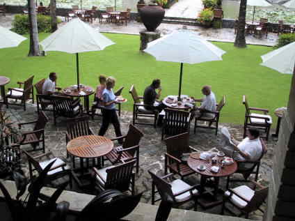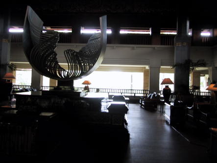 五ッ星のホテル。ロビーはオープンで、風が吹き抜ける。 しかし湿度が高い。天井扇がゆっくり回る。 |