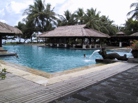 | バリの海は清らかだが、透明度は1mもない。年中そうだと言う。 沖縄の海のように、カラフルな熱帯魚を見ることが出来ない。 |