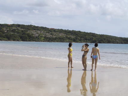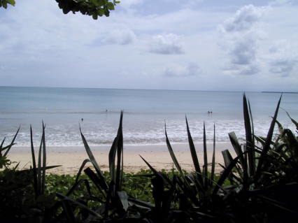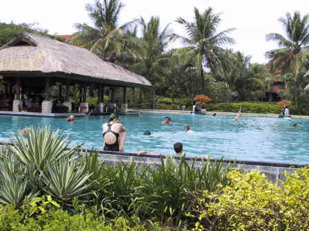 | 欧米人と日本人が半々くらい。トップレスの女もいた。 水温は30度、北国育ちの私にとってお風呂に 入っている感じだ。 |