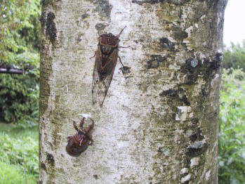 8月中頃。蝉が長い(7年)眠りから覚めて出てきた。