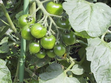 | インゲンの花。 | トマト。成長力が旺盛。わき芽摘みが大切。 | |
