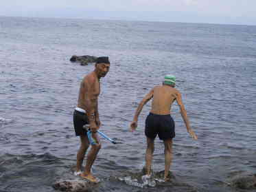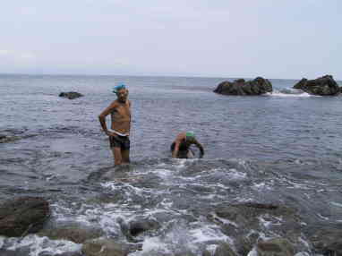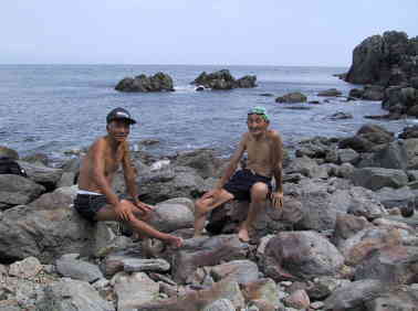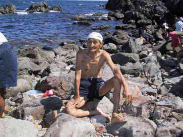 左は長内大兄75歳。彼もまた自転車に乗って海に来る。