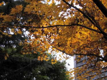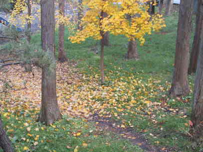 隣の公園。黄葉しているのは、私の植えたカツラ。